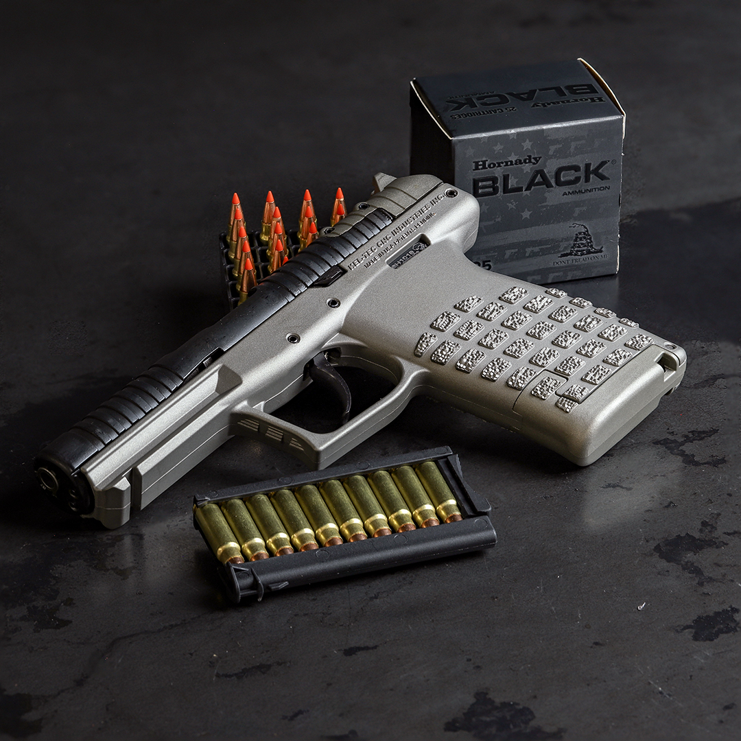 Our latest exclusive with Keltec is this PR-5.7™ in a Titanium finish (because Henry Ford doesn't work here). The KelTec PR-5.7 is a compact concealed carry pistol chambered in 5.7x28mm. Featuring a rotary barrel and a top-loading design, it’s ultra-lightweight and maintains an impressive 20-round capacity.