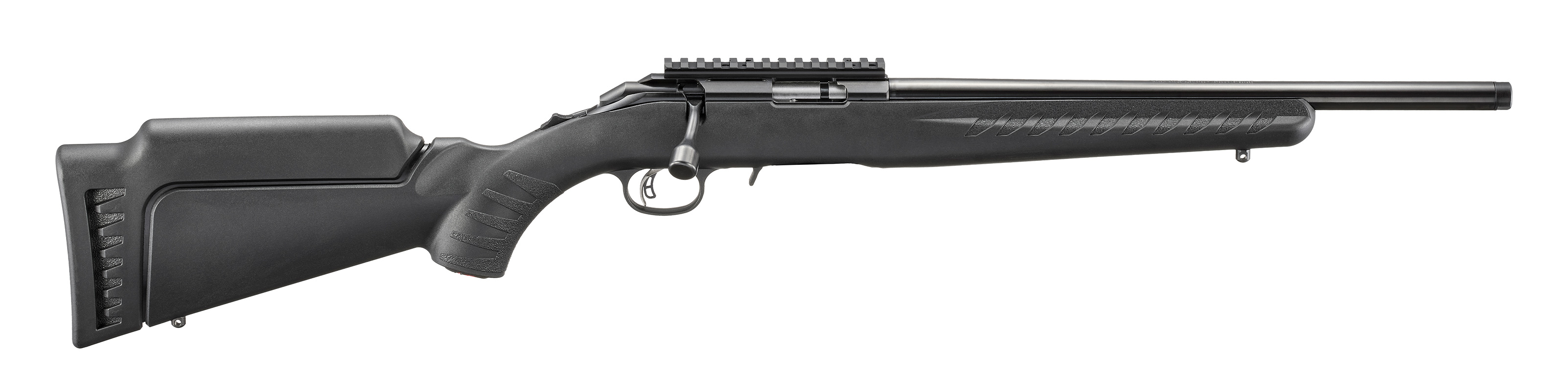 "Ruger is adding three new, versatile models to the Ruger American® Rimfire rifle line. Available in 22 LR, 22 WMR and 17HMR, each model features a 16.1" cold hammer-forged predator barrel(threaded 1/2"-28 with thread protector), a durable satin blued finish and a black synthetic stock. Each model also comes equipped with a factory-installed Picatinny rail, making them perfect for plinking, target shooting, small game hunting and ideal as a suppressor host."